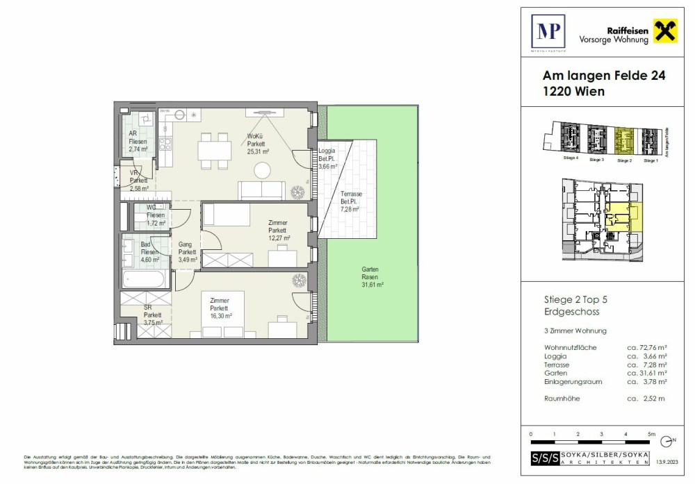 | Stiege 3 - Top 3/23 | 3 | 2 | ~ 71 m² | € 513.800** | € 32.490** | € 546.290** | FREI | |