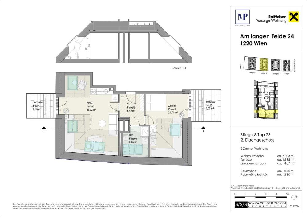 Stiege 3 - Top 3/23 3 2 ~ 71 m² € 451.700* € 28.500*€ 480.200* FREI