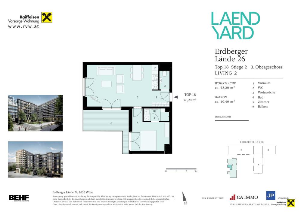 Stiege 2 - Top 18 3 2 Zimmer ~ 48 m² € 1.145,00* FREI